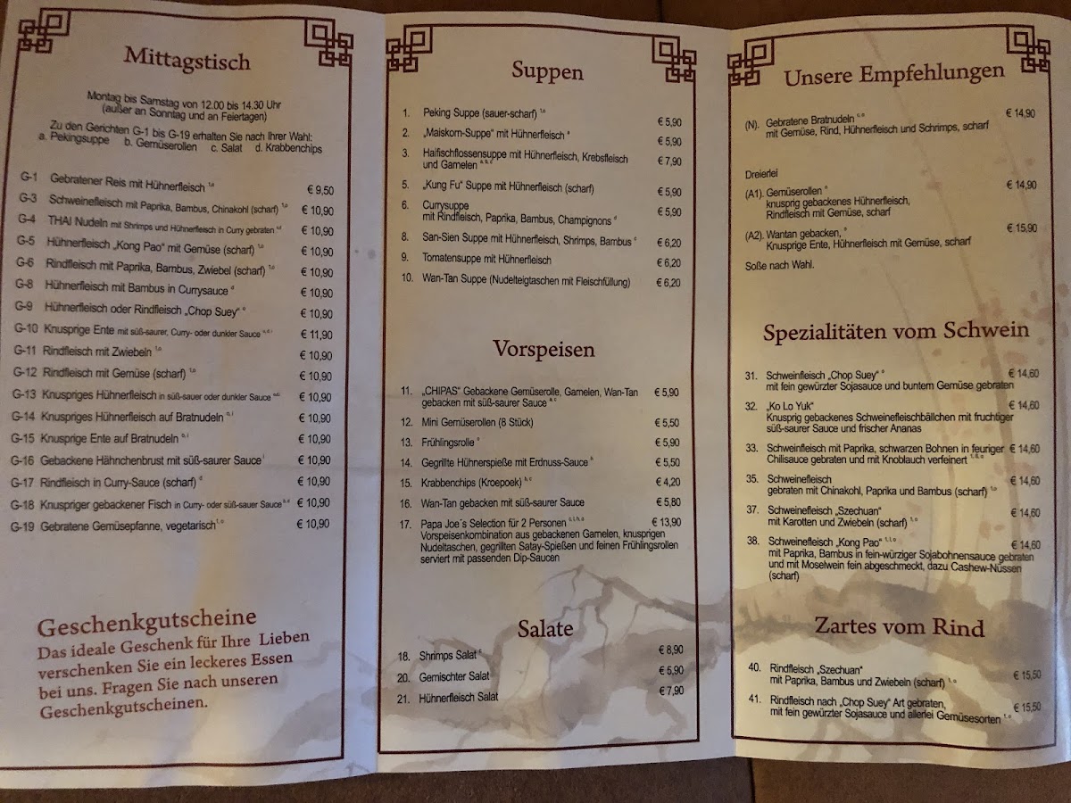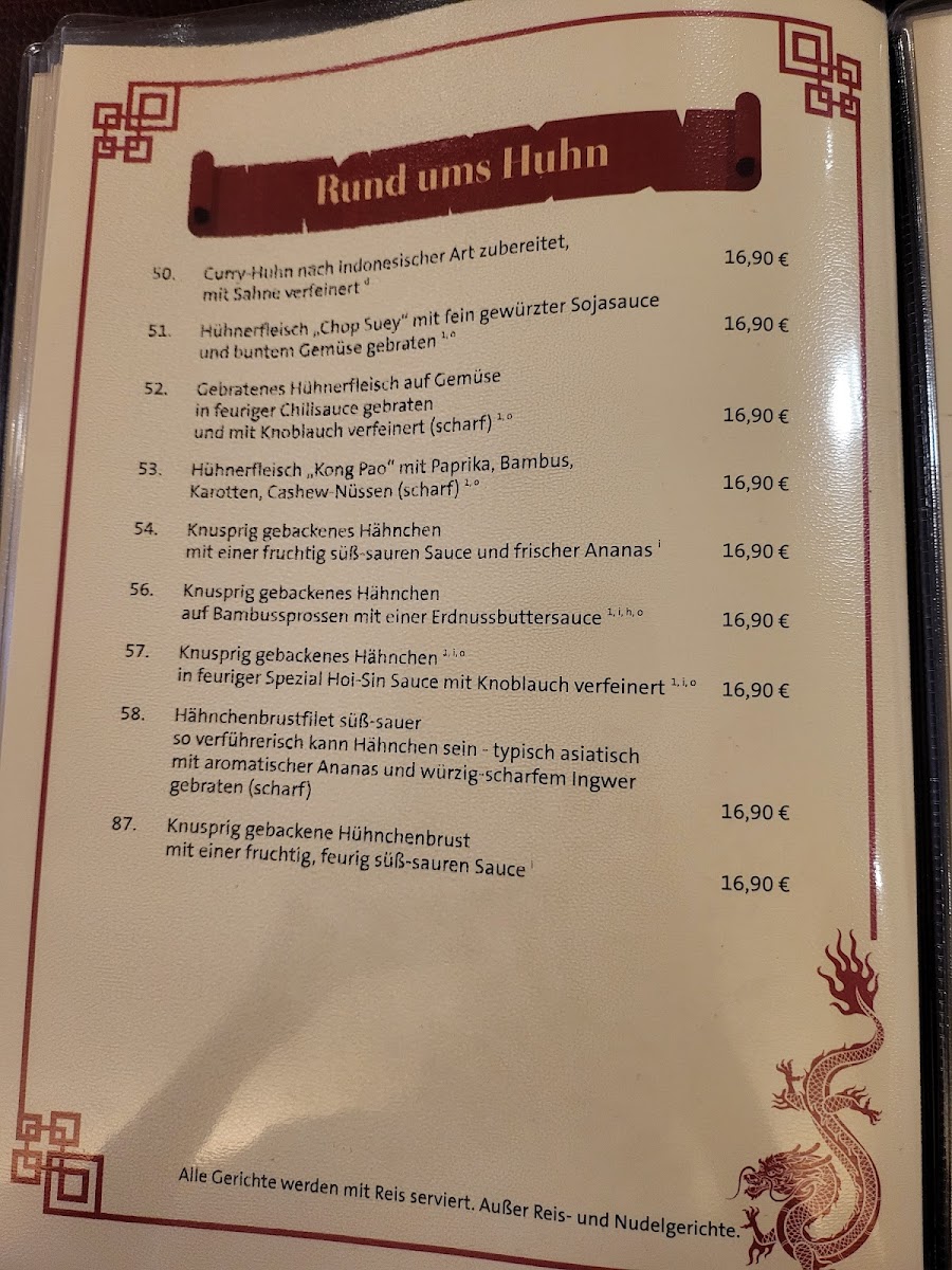 One of the standout features of Goldene Drachenburg is its generous portion sizes, ensuring you leave with both satisfaction and a full belly. The menu is thoughtfully crafted, with a wide array of dishes that showcase the rich flavors of Chinese gastronomy. Customers rave about their dining experience, highlighting not only the delectable meals but also the warm, inviting atmosphere created by the friendly staff.
